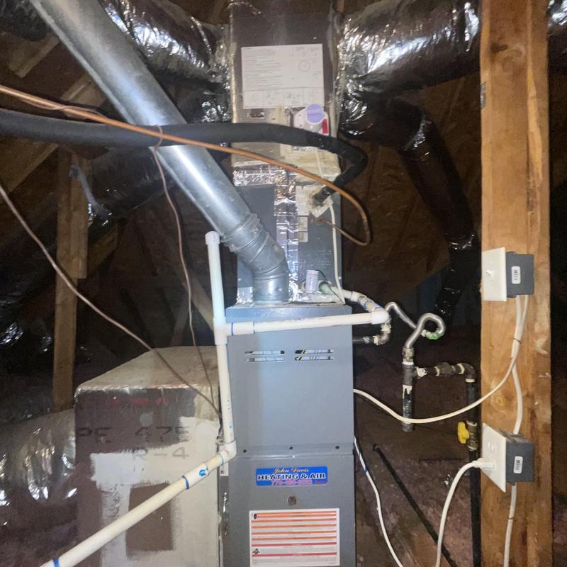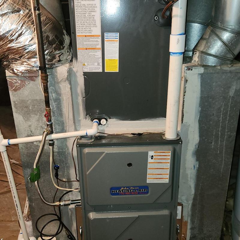 John Davis Heating and Air installed a 60,000 BTU, 80% efficient Amana furnace in Hampton, Georgia. The project replaced a 30-year-old furnace that had stopped working. The new system includes a manufacturer warranty, providing added reliability for the customer.
