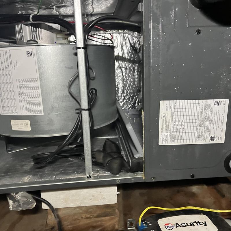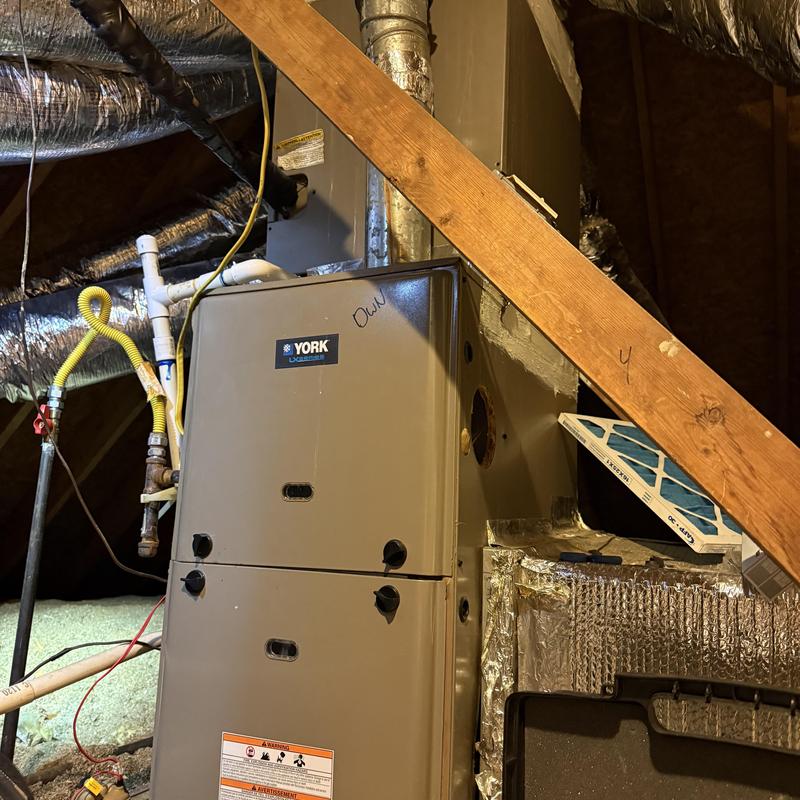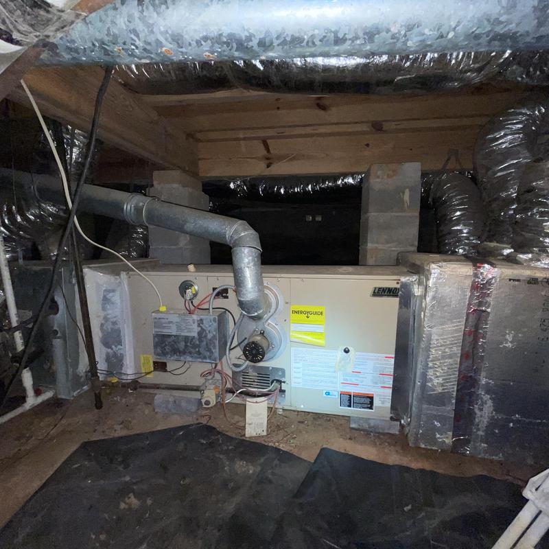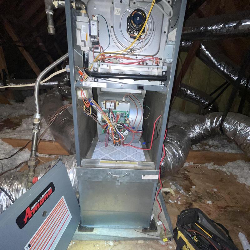 John Davis Heating and Air installed a new Amana 80% 60,000 BTU furnace and split system air conditioner in McDonough, Georgia, enhancing heating efficiency and cooling performance for year-round residential comfort.