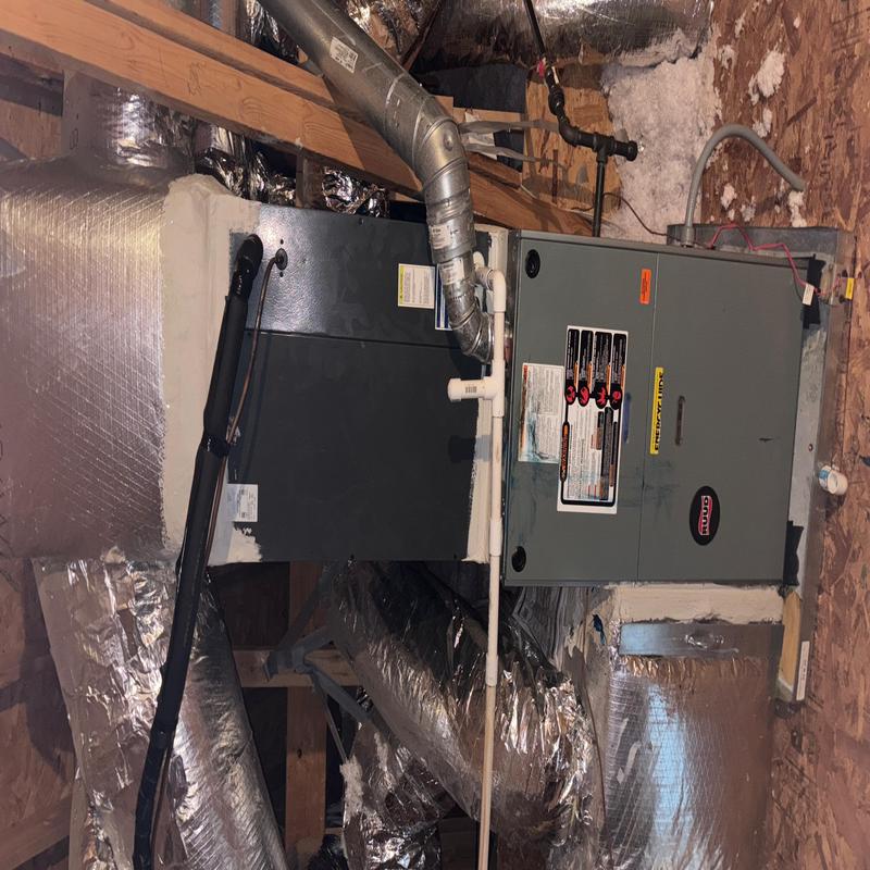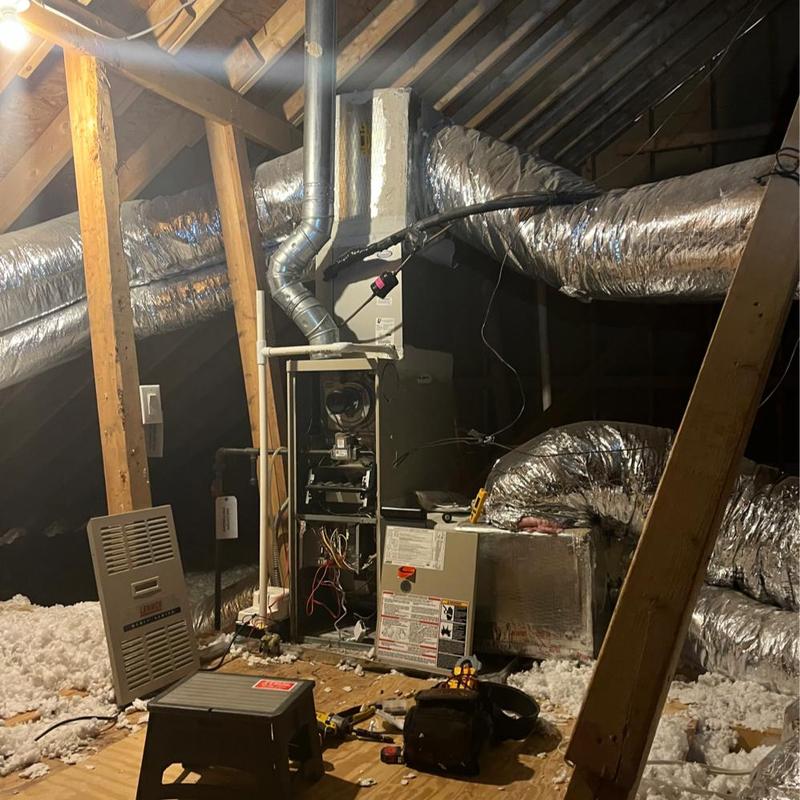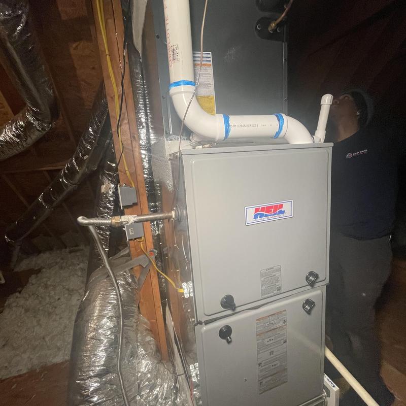 John Davis Heating and Air installed a new 80% efficiency 60,000 BTU furnace at a home in Sharpsburg, Georgia. The system was fully operational, and the homeowner reported effective heating by that evening.