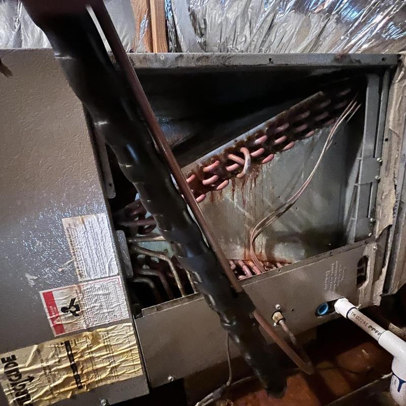 A technician in Hampton, Georgia, inspected a malfunctioning Carrier HVAC system. The service visit identified multiple cracks in the heat exchanger and damage to the coil, confirming the system was unsafe and inefficient.