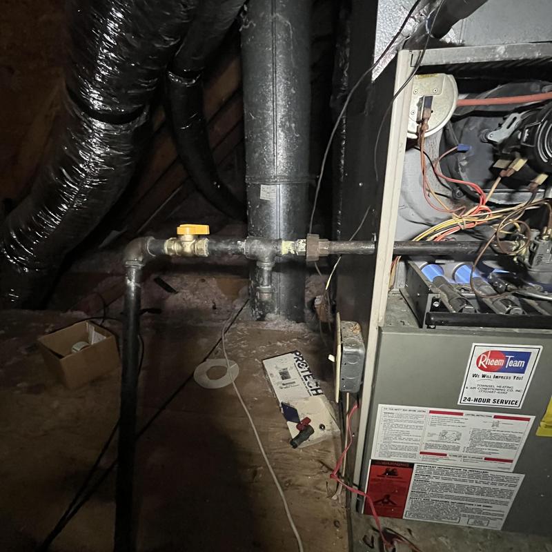 A technician adjusted the gas line shutoff for a Rheem furnace at a residential property in Peachtree City, Georgia. The service ensured the system was ready for the home's upcoming sale and is part of ongoing maintenance across multiple properties for this client.