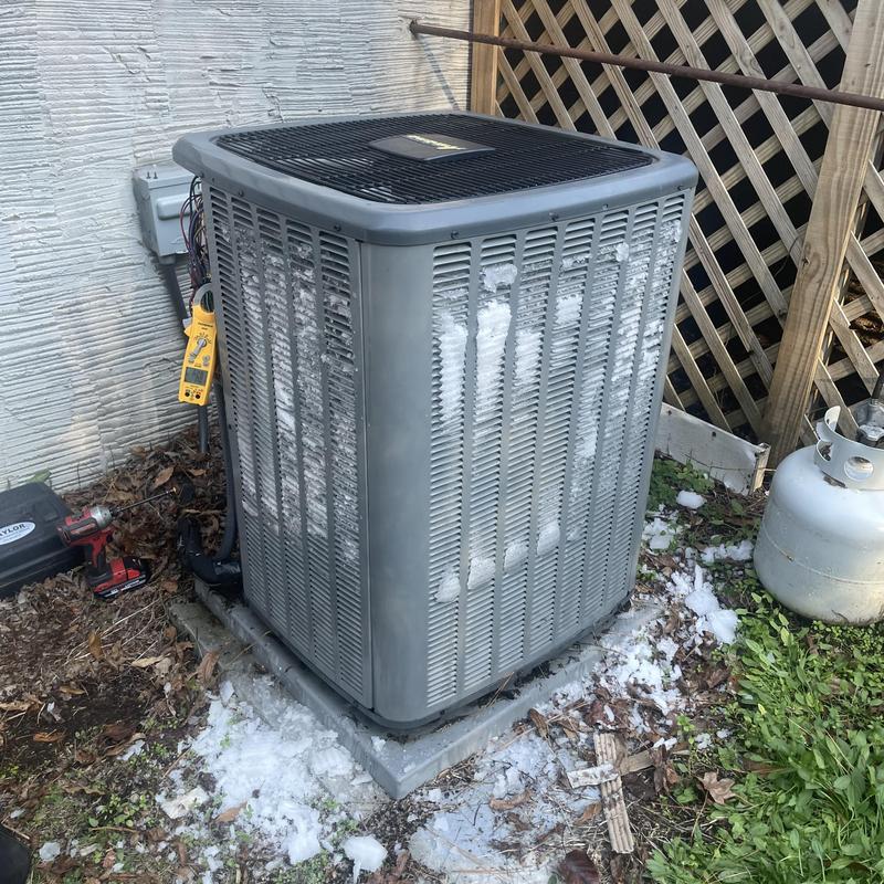 In Senoia, Georgia, our technician inspected an Amana heat pump freezing during winter, diagnosed a failed capacitor, and replaced it under warranty, restoring efficient operation and preventing further cold-weather damage.