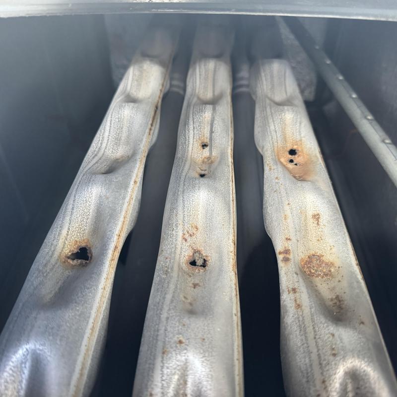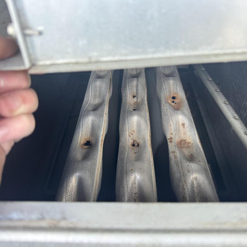 Technicians in Forest Park, Georgia inspected a Lennox commercial HVAC system and found large holes in the heat exchanger. The damaged component required immediate replacement to restore proper heating.