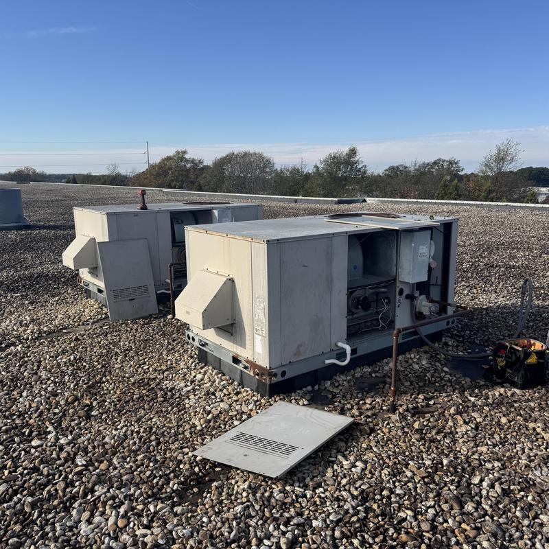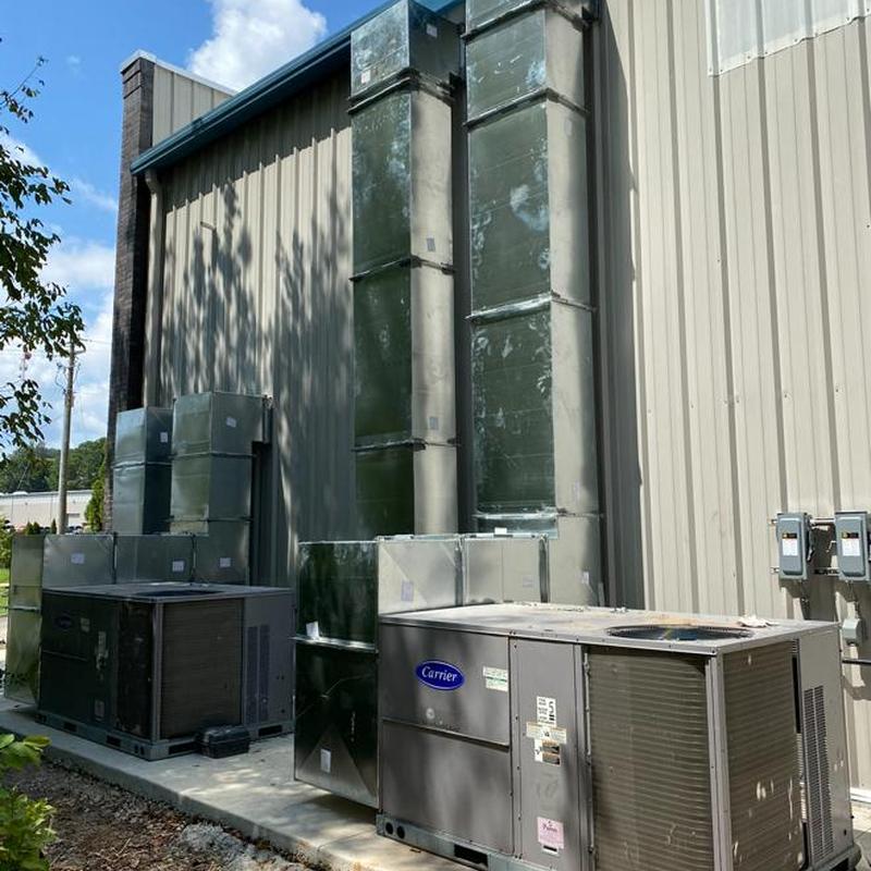 Technicians replaced the air conditioner and coil on a Carrier system for a commercial property in Ellenwood, GA. After installation, they tested the equipment to confirm proper operation.