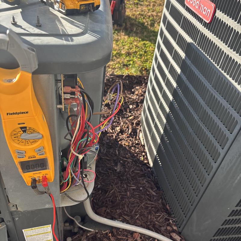 A technician in Peachtree City, Georgia, inspected both Carrier and Goodman HVAC systems in a recently purchased home. The inspection confirmed system condition before closing and included a unit cleaning to ensure proper function during the transition period.