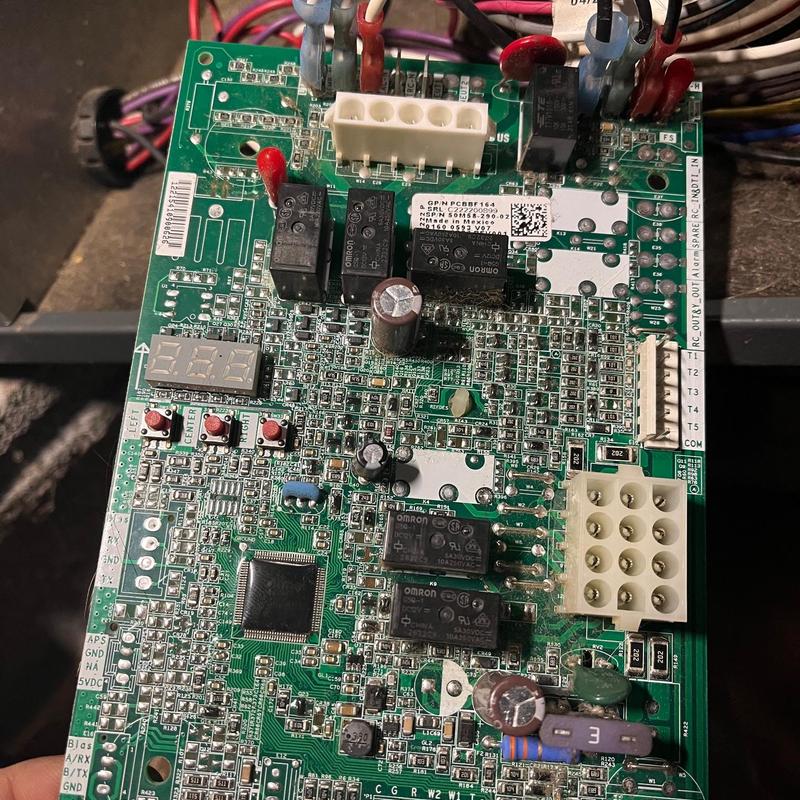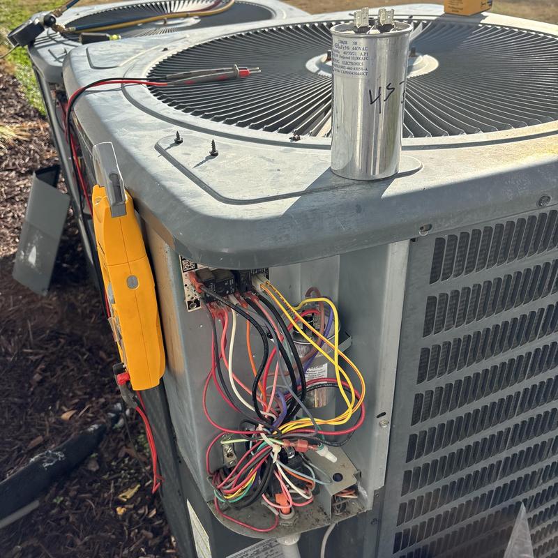 A technician in Peachtree City, Georgia repaired a Trane heat pump by replacing a damaged control board and capacitor. The repair restored full system control and electrical function. The technician tested the system after installation to confirm it is running safely and efficiently.